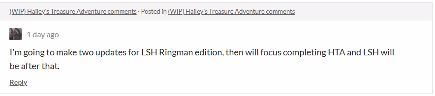 Prob just can't focus on a single project, since i ofter see LAGS constantly updating and aswering people at Itch.Io. I just want my HTA updates back :sob: