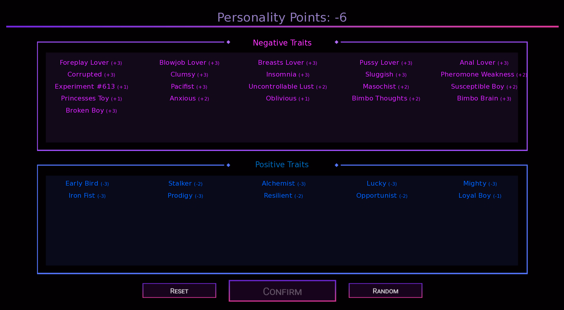 Yeah what the person above me said basically.Where can I enable them? I don't see any option and on previous versions I didn't have to. I also don't have 'shemale lover' trait when starting a game.