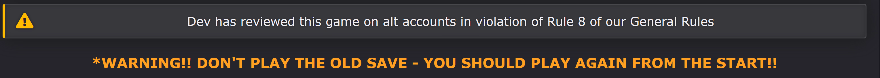 (Actually, the reason for the warning above is because Izumii used to fix the code in the old updates, which can lead to errors when you continue play and save automatically. That's why the "Warning" above tells you to play again from the beginning because at the very beginning of the game, Izumii created a save for everyone so that everyone can continue playing the latest updates without any problems.) 1760205093507.png