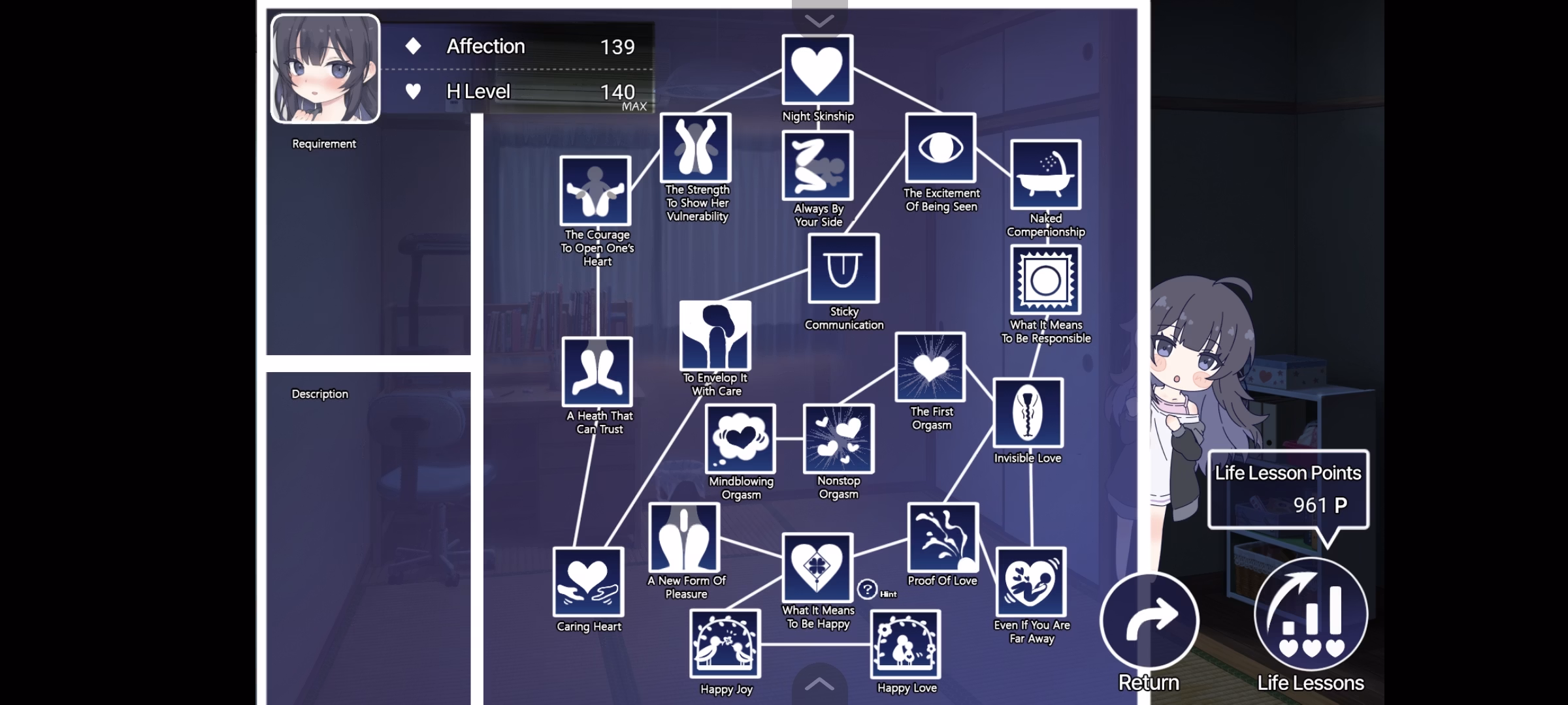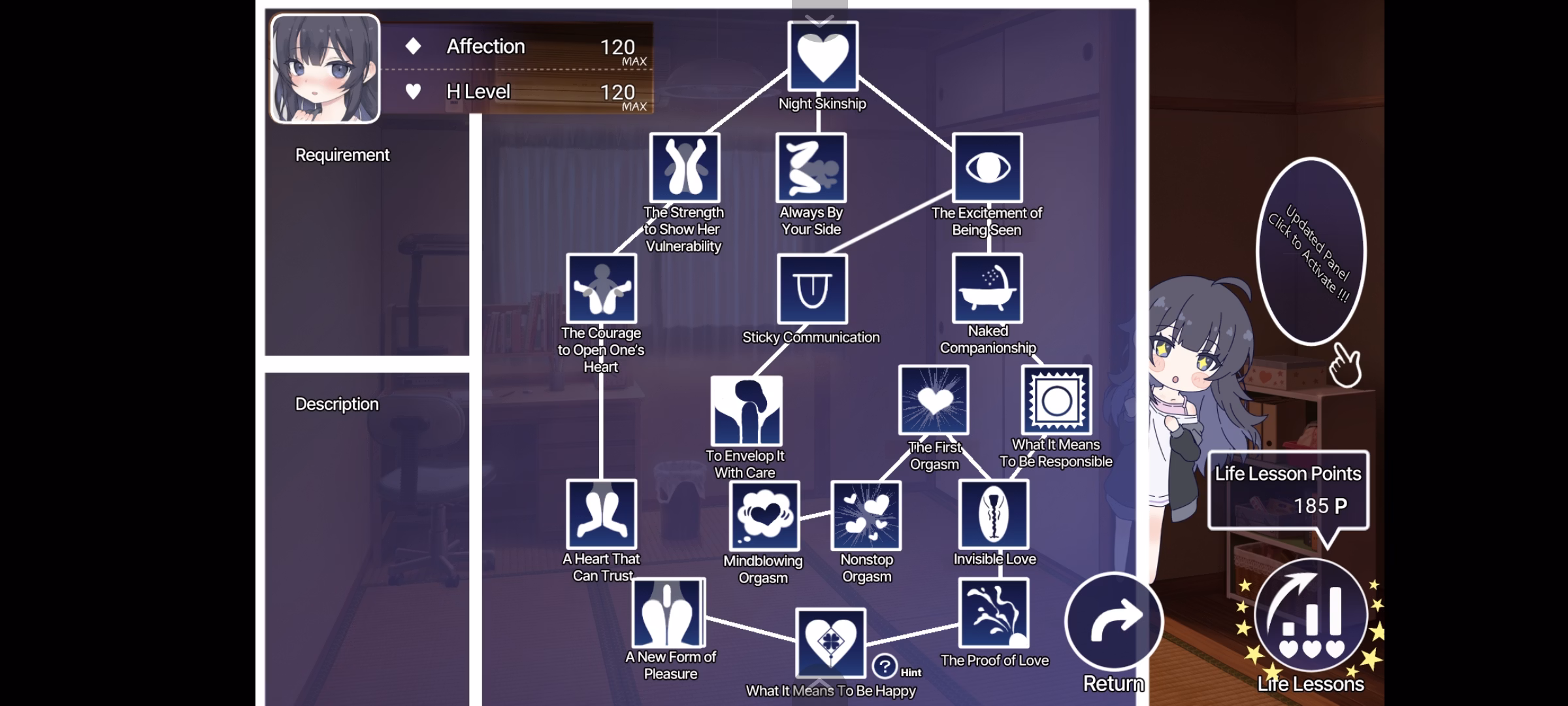 After reaching the first ending, go to the Life Lessons menu and click the sign "Updated Panel - Click to Activate" at the right side.bro how to get that pregnant and marriage ending?