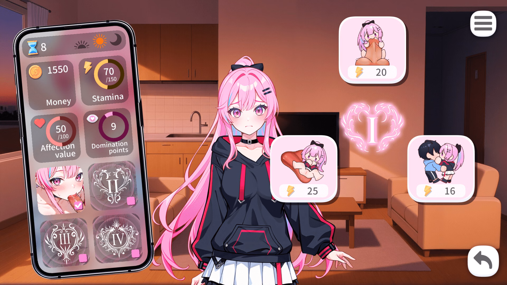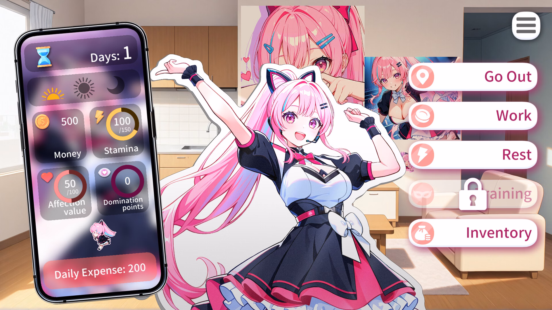 A time-management romance sim AVG. As a fan, you take in idol Momoka to start living together. Influence the relationship via daily schedules & dialogue choices: work, cheer at concerts, give gifts... Win her heart, make her open up, and unlock intimate scenes.