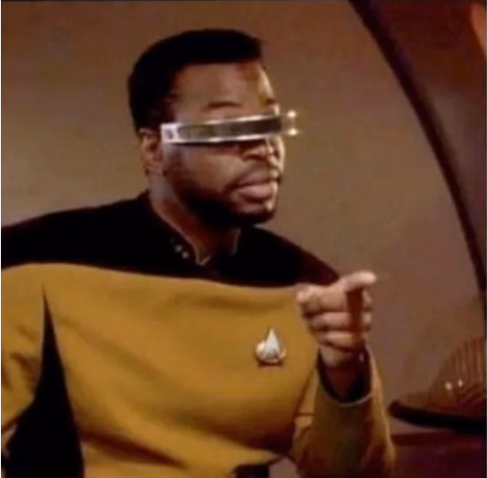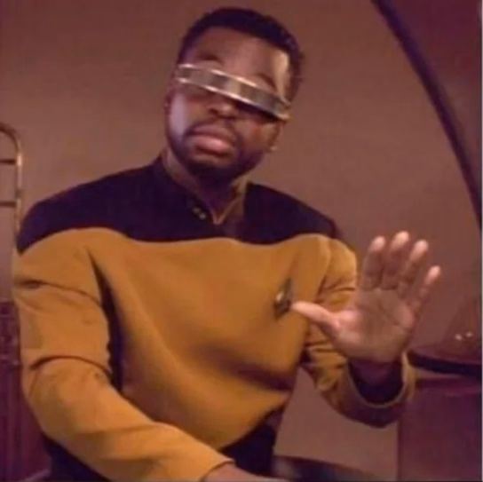 Hold up, let me check with my good friend Geordi."First" stops - Everyone probably has a different idea of what the MC should do first now that he's back in the 'real world'
