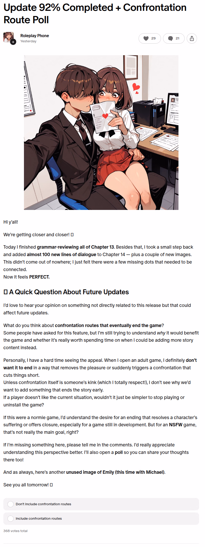 Don't even get me started on that part of the game where she 'accidentally' sends a nude to the guy, where she sends YOU to make him 'delete it' .. only for the guy to show you 2 other nudes of her while you don't question it all at.