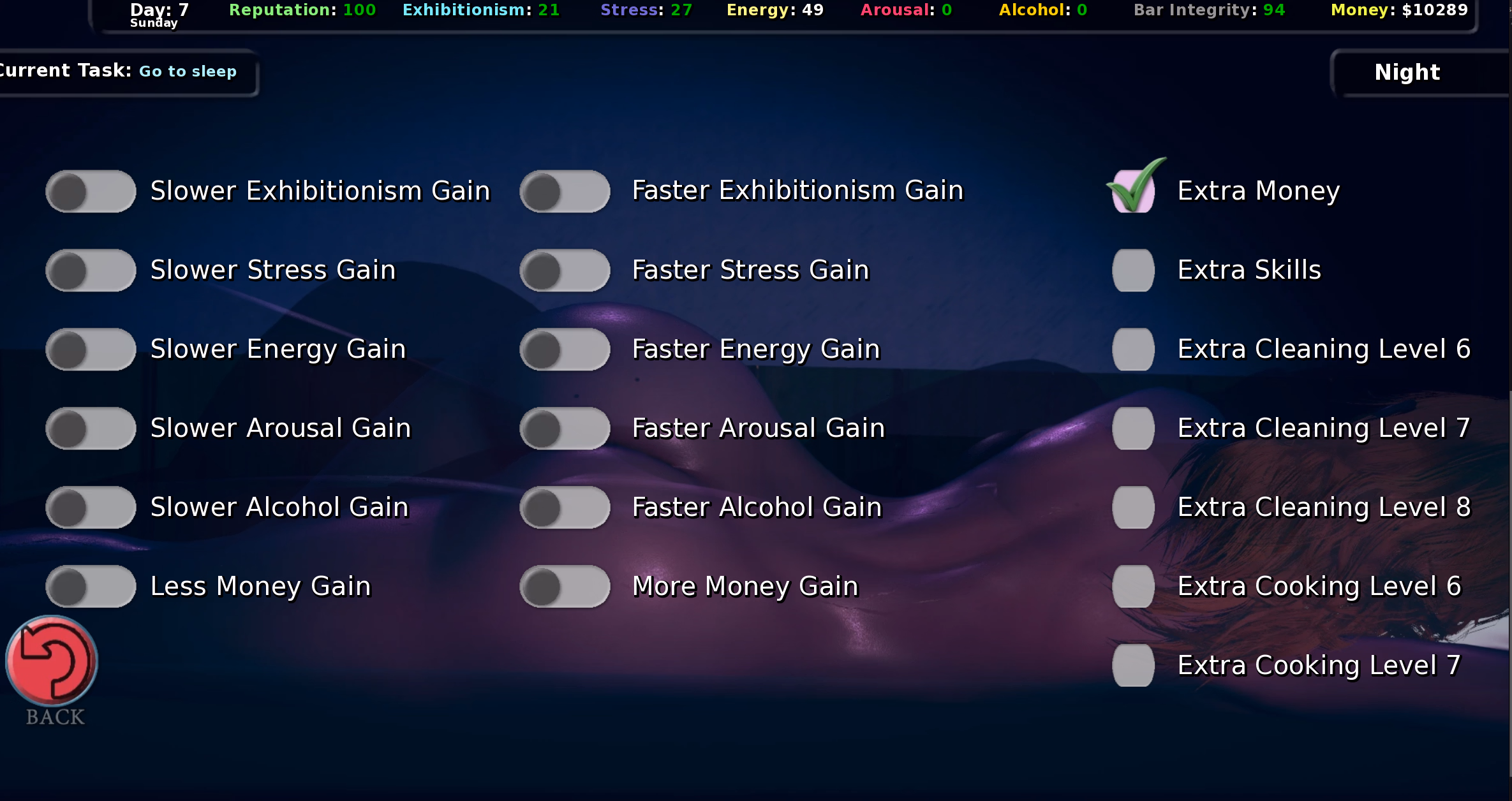 the bar waitressing mini game is the game's strongest point and it should have focused and polished that, instead, we got more minigames, and the bar has a new unfocused bar tending minigame. the train has become a new minigame that takes more minutes of player's time when it was just a few clicks before. everything now is just a mindless grinding to just raise your stats so slowly so you can get to the require stats to unlock the next steps of the porn event cgs