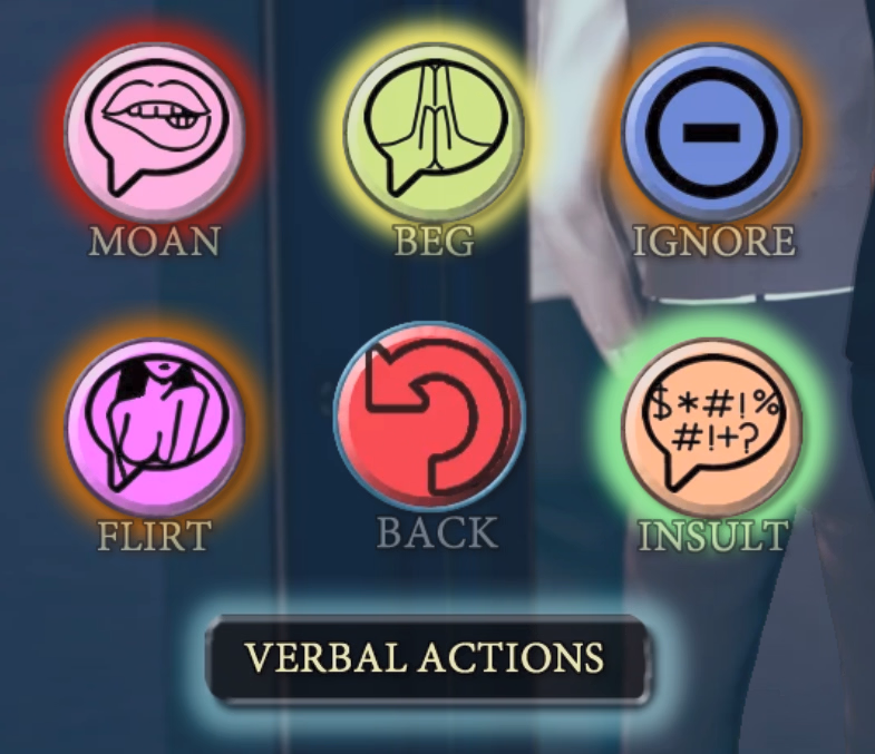 Hit the evaluate button, it will unlock the ability to see what verbal action have a huge impact on the will gauge.
