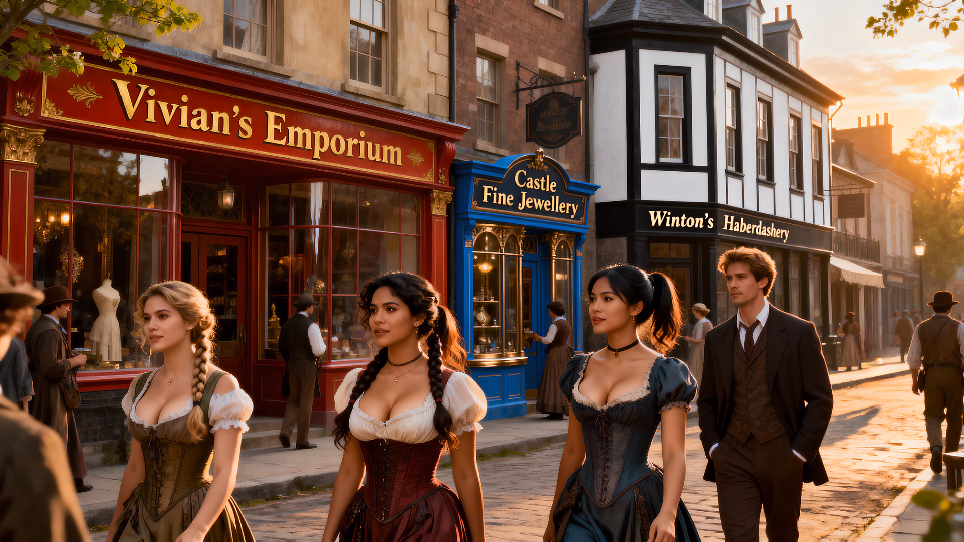 Speaking of scene compositions. When I first started this I mostly used background scenes I had generated using standard SDXL checkpoints. Which does the job, just not particularly well - especially if people are in the scene. Which is why some of the early scenes in Luminaria have quite botched faces in the background characters. I later switched to Flux Pro, which is where nearly all the backgrounds from about half way through Chapter 1 onwards came from. For the last update I also started using Nano Banana. Flux does great stuff, but for general backgrounds it tends to produce very similar overall compositions and it wasn't working for the rainforest scenes because it was adding in well worn and easily traversable paths into most generation attempts. I tried a few different ones and Nano Banana was good at not doing that and creating more varied scenes, so I started using that too. For the Emelia event I needed to do more scenes in Luminaria with people in the background. I tried out SeeDream 4 and was pleasantly surprised as the images were pretty good, it handled concepts like fusions of modern and and old fashioned clothing well and the background faces were much better. Still problematic but fixable with face improving upscaling tools. It's also very good at following instructions. Attached are some of the backgrounds, including the redesign of the street where Vivian's shop is located. It's a little bit basic in terms of colour schemes, but I think for future stuff I can probably get much more intricate designs out of it. Flux will do wording and signs, but nothing like as consistently as this. I don't think it would allow me to specify the signs and parameters for 3 different shops with signs and actually do them, whereas SeeDream did. So that's a nice little find. Unfortunately its 3x as expensive as flux to use, but I need less generations to get what I want so there is a trade off there.
