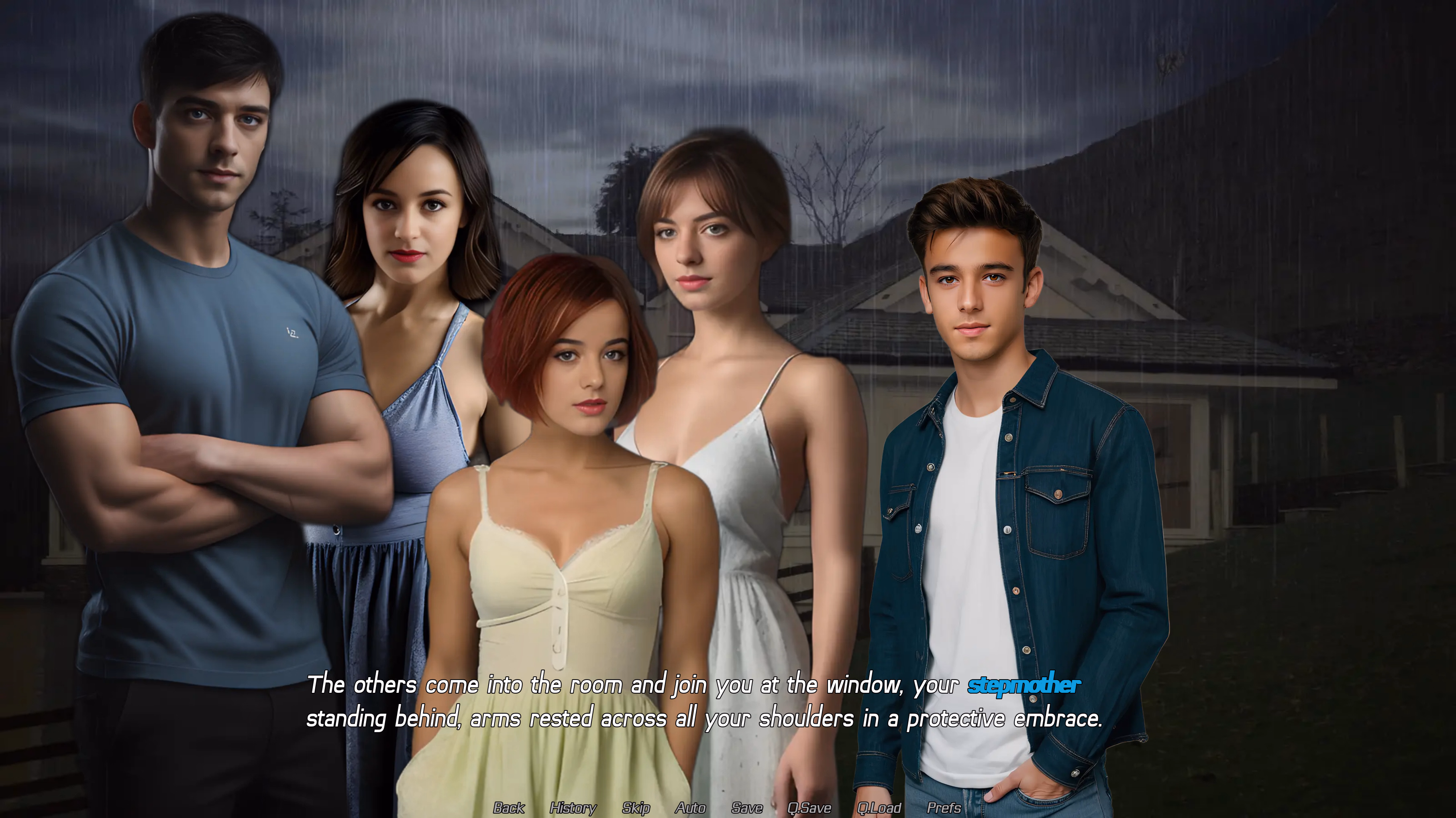 Do not overthink the whole "step-family" dynamic. Some AVNs have "step-families" some have "landladies and tenants/roommates", this is because incest is illegal and hosting sites tend to ban games that contain incest, so devs create spurious relationships to avoid such bans.