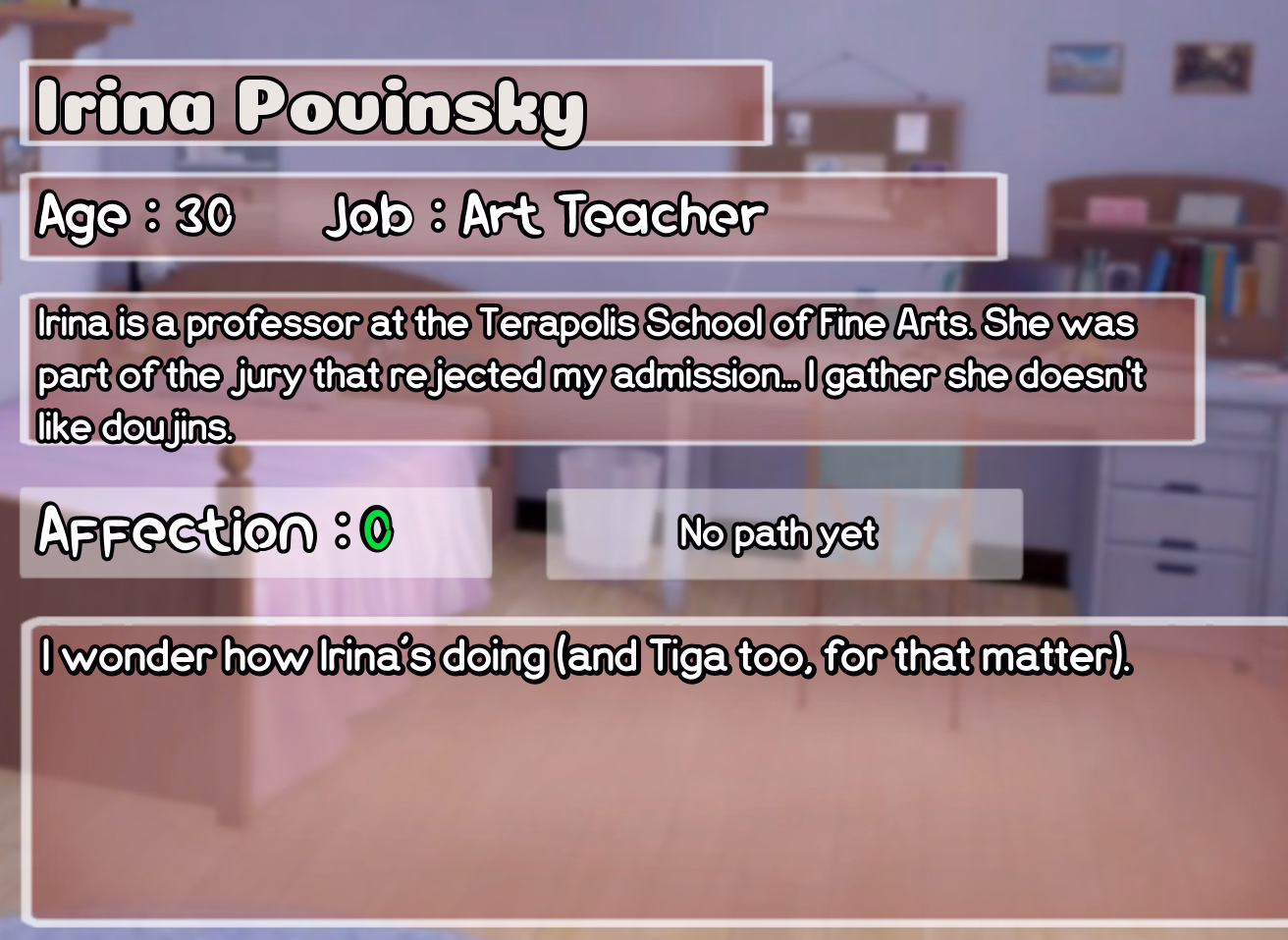 After you've upgraded your farm to be able to milk you have to visit her at the back alley.How do I finish this step for Irina? She only buys vegebubbles for 3k and the dialogue options / sex in school doesn't seem to have changed. On version 3.0.1 to be specific. View attachment 4884531