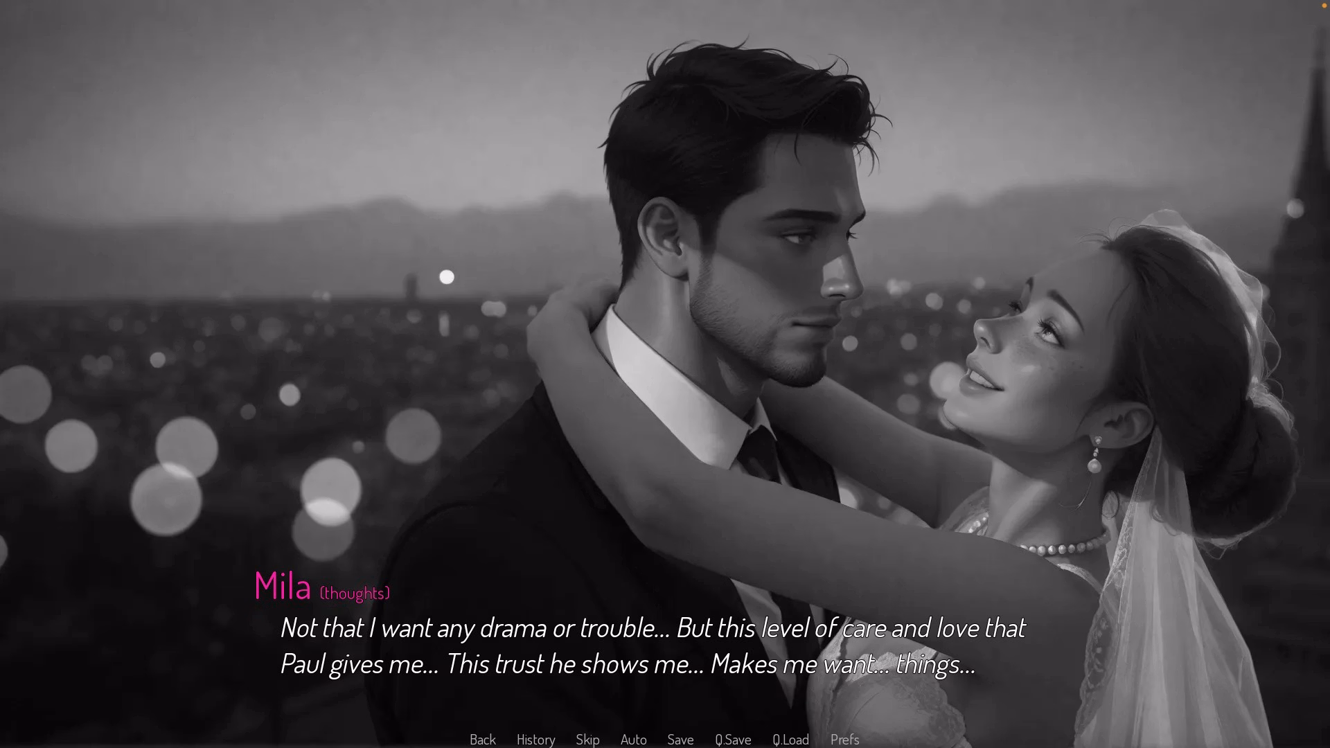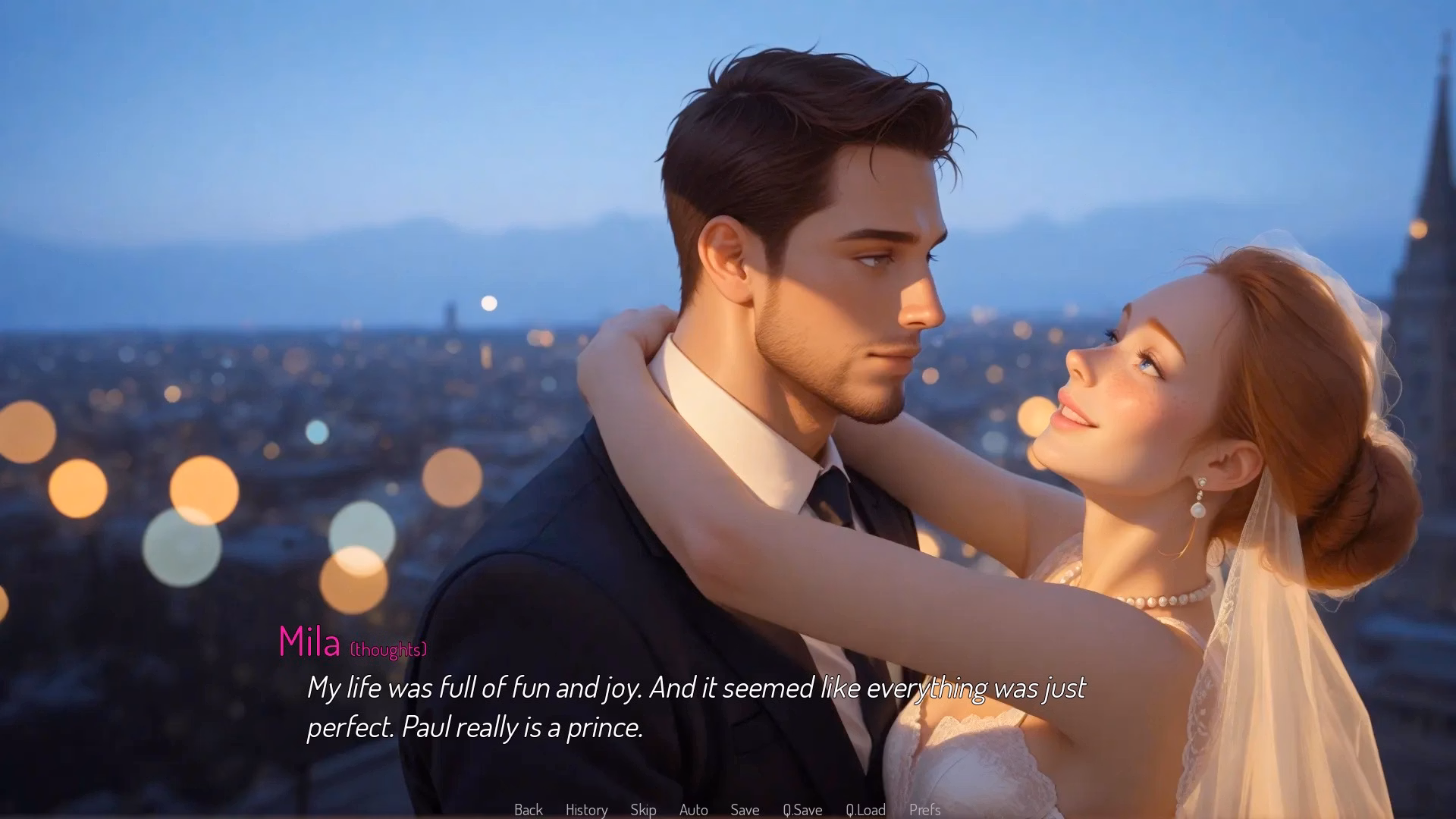 Mila "My life was full of fun and joy. {w}And it seemed like everything was just perfect. {w}Paul really is a prince. {w}He's handsome, smart, and can take care of me."