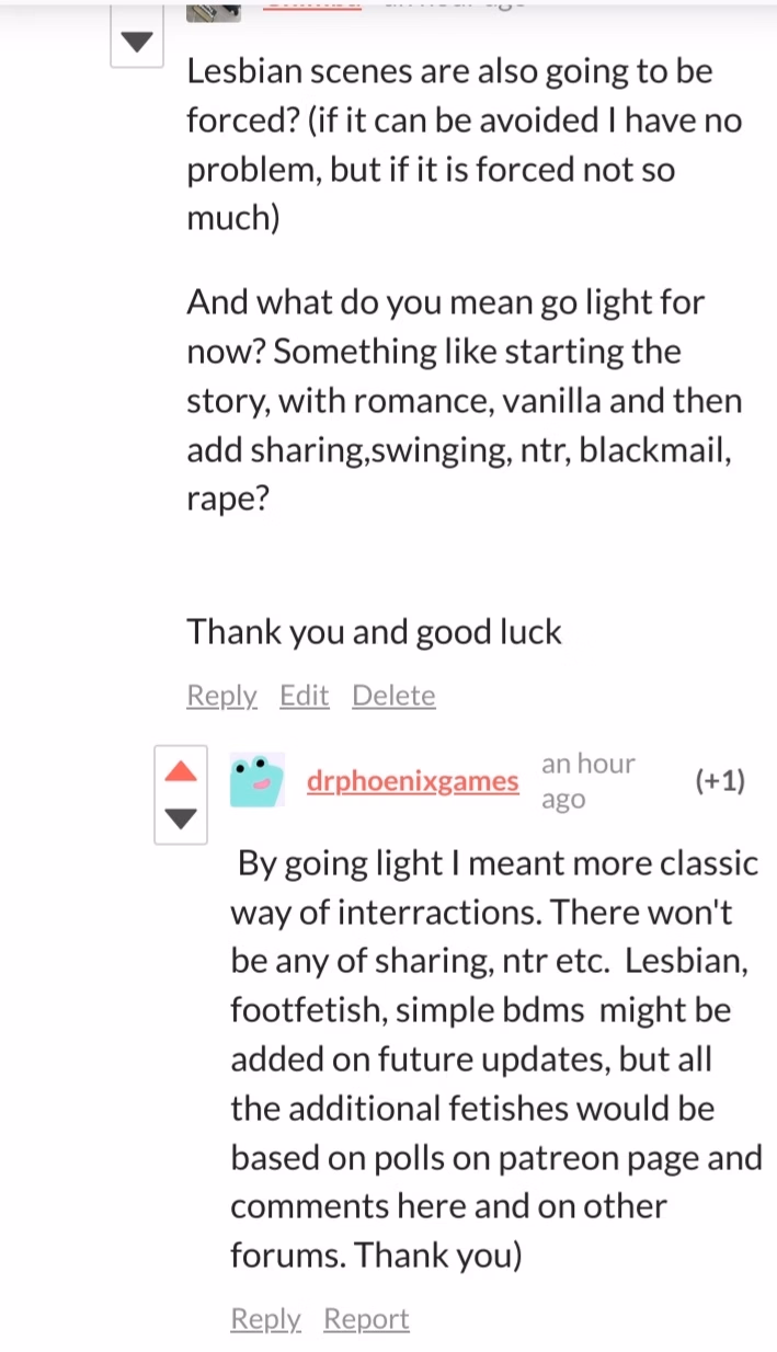 The tag exists because I reported it. It doesn't matter if you have an MMF threesome with a Li or an NPC; it's sharing, and swinging is a substitute tag for sharing since that tag doesn't exist. And hey dev, why should we believe anything you say anymore? You've proven you're a liar about not sharing with Lis. So why did you make that sex scene with Tyrone and MC's sister back then? You need to decide soon: harem or NTR/sharing? Currently, you have a cuck/NTR game. Tyrone had more sexual interactions with the MC's family than the MC himself, so don't talk such bullshit. Tyrone is only in the game for one reason: so he can sleep with the women and the MC gets nothing. Currently, the game has nothing to do with harem or incest because there's no sexual interaction with the MC and his family, and there's no harem in the game because the MC only has one girlfriend, and she doesn't know that the MC is cheating on her. Currently, you have a cheating/NTR/cuck game. The best thing you can do is rewrite the game if you want to make a harem game, which I don't believe. You're too thick-headed to see that you've messed up. An MMF scene in a harem game is absolutely unacceptable.
