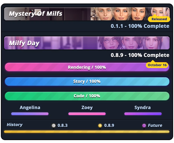 Good news! Milfy Day 0.8.9 is pretty much in the bag!