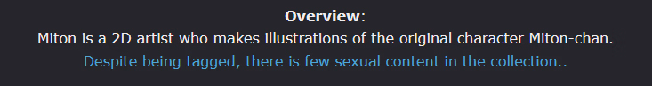 Miton is a 2D artist who makes illustrations of the original character Miton-chan.