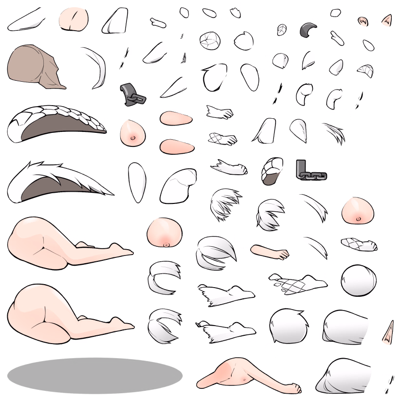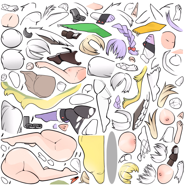 This WIP 1024x512 sprite sheet allows to load all woman type characters at once with most of customizations features enabled.