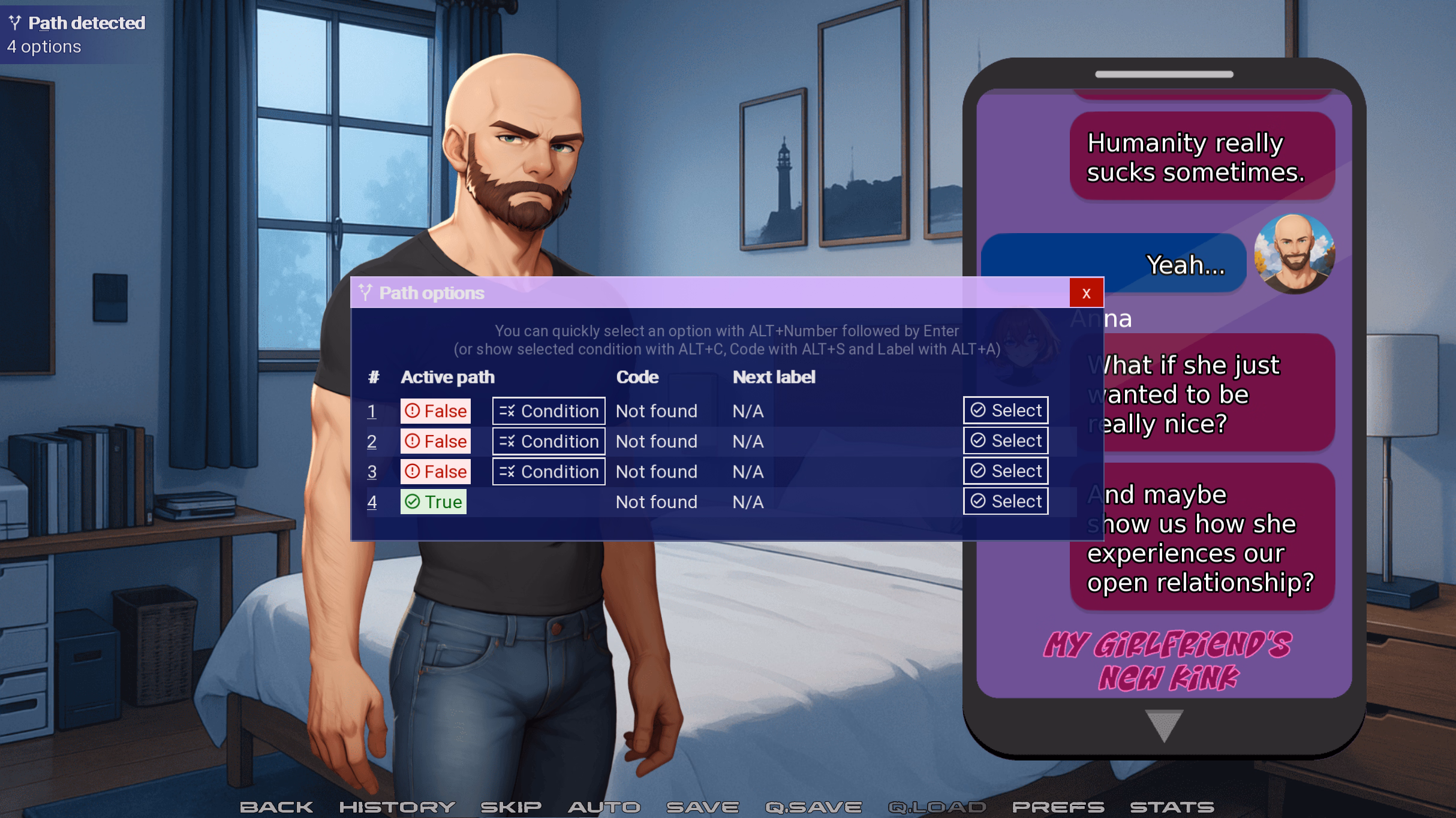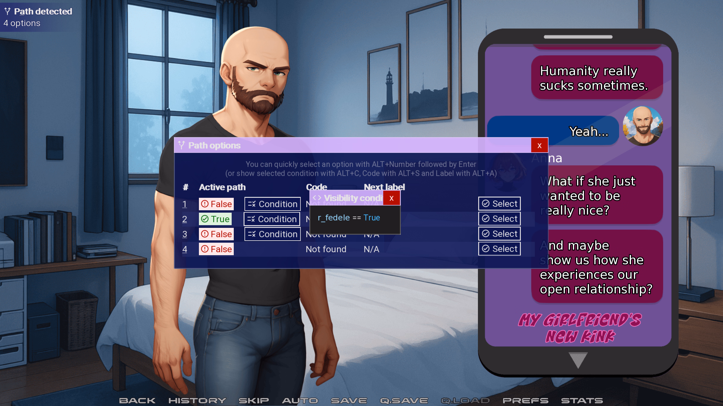 Not every route has Alex being okay with Anna having sex with other men while she's away. I'm hoping the two of them have a deep conversation about refining/defining boundaries while he visits her in the upcoming chapters so clear lines are drawn and both understand what constitutes "fun" vs. "cheating" and that both of them end up on the same page.