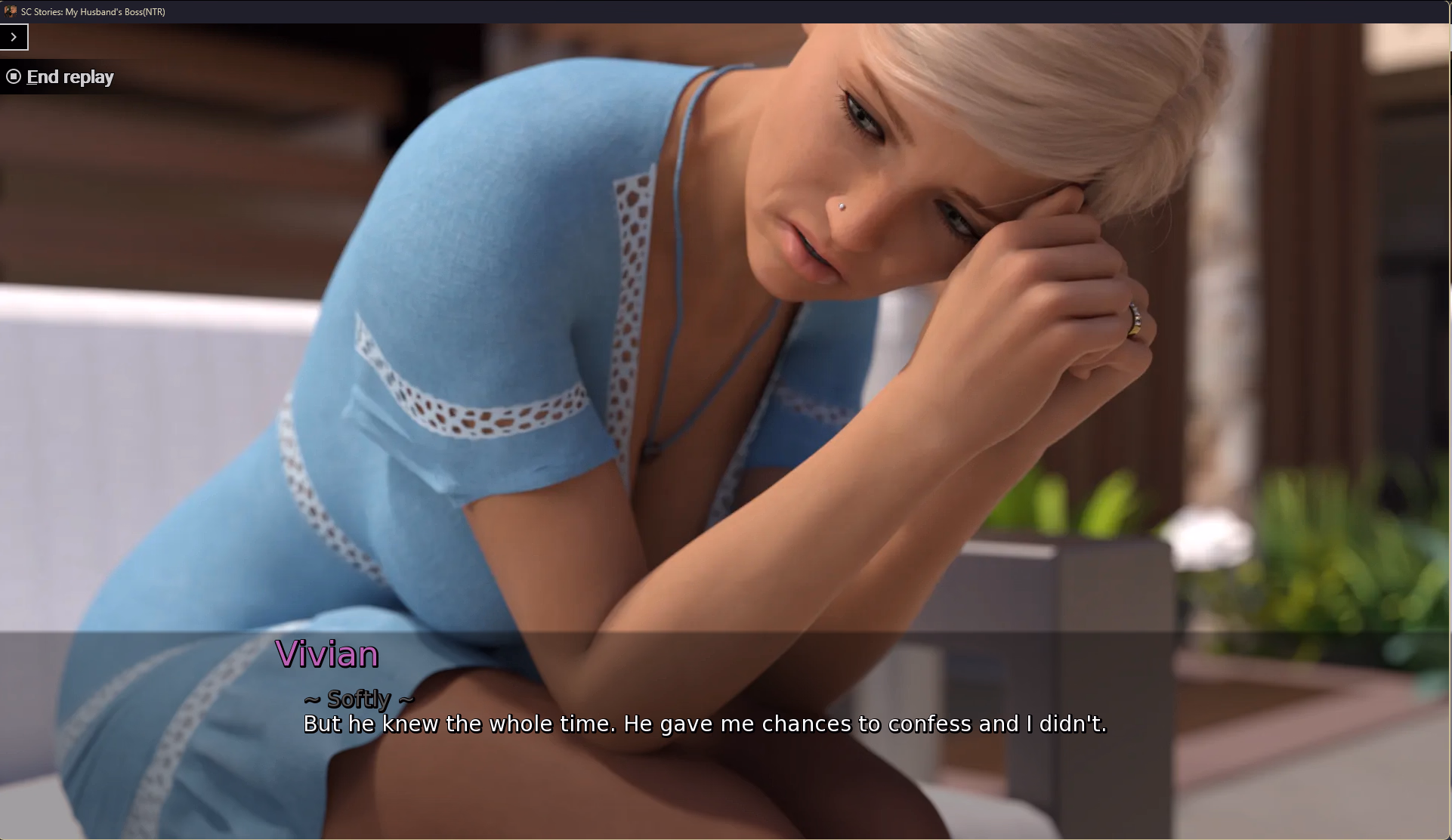Vivian's attempt to escape is just a shallow attempt to deal with her guilt. At this stage she knows that Hutch knows practically everything, and this is her last ditch to seam like she is on his side. At any stage... any stage... she could have put her foot down and said "no i wont do it"! It's her body, her choice after all. But after guzzling down a gallon of Christian's jizz, she chooses to be his cum slut, and not her husband's well being.