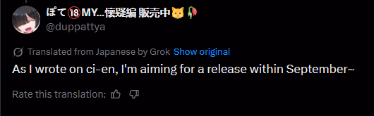 according to the devs, they said that they'll release it around septemberYou sure about that?