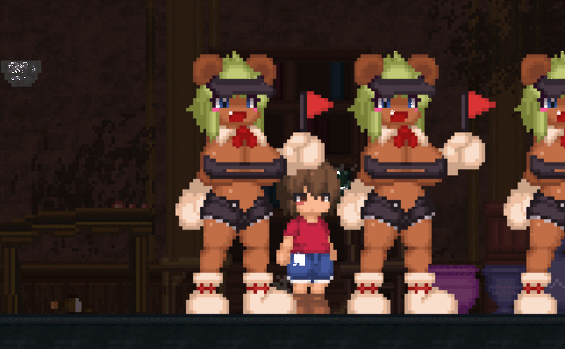 The game takes place inside a decaying, multi-floor abandoned building filled with dark corridors, strange rooms, and hostile creatures. The focus is on slow exploration, environmental tension, and navigating the building’s floors while encountering enemies and scripted events. Each update typically introduces new rooms, enemy animations, or mechanics, and reflects the author's iterative development style. Unlike his more combat-focused projects, Nazo no Haibiru leans into a claustrophobic horror tone, highlighting tight spaces, surprise encounters, and survival-style progression. Players must explore carefully, pay attention to environmental clues, and avoid or endure encounters with the building’s residents.