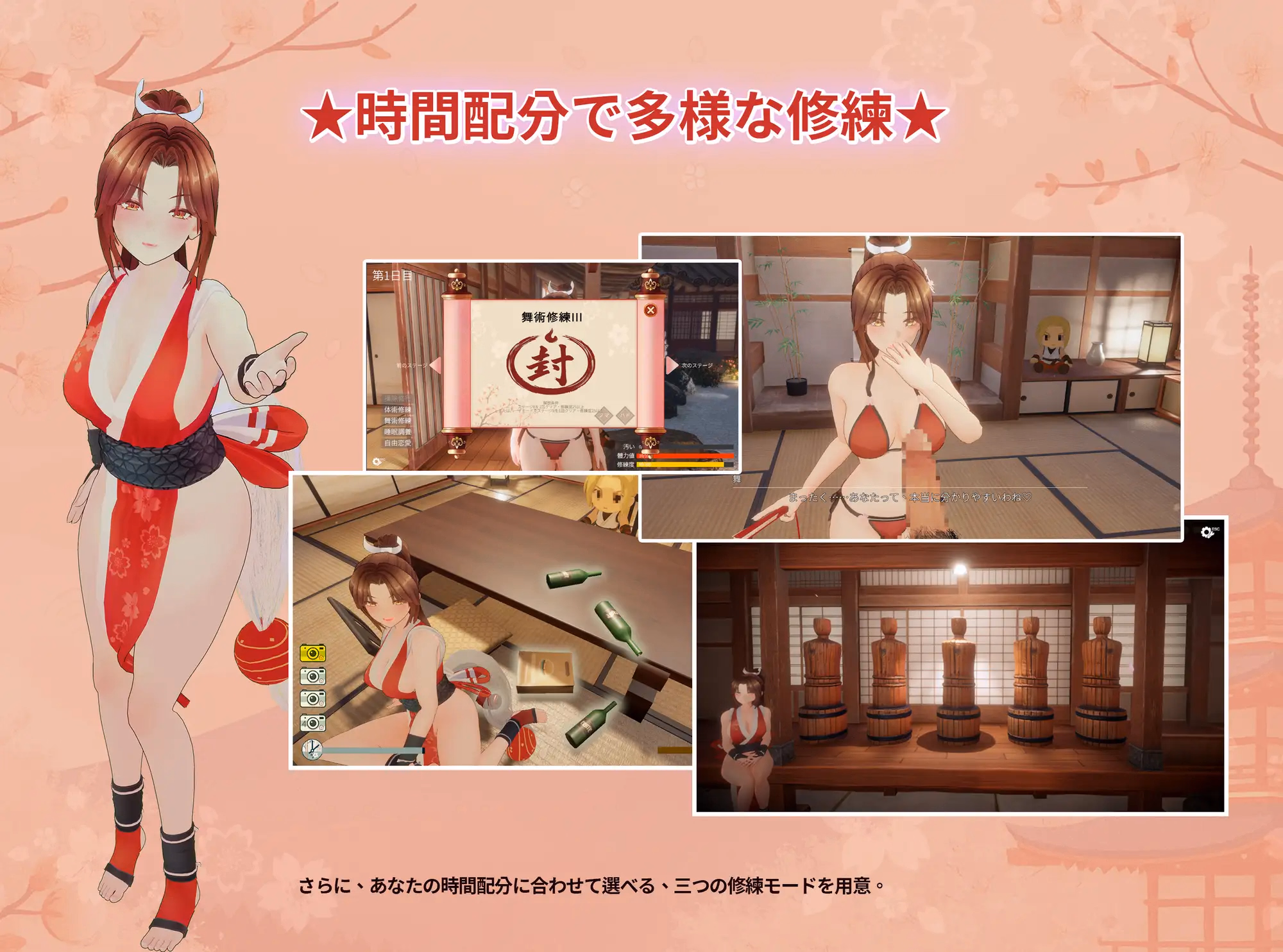 A young man applies to become an apprentice to a legendary female ninja master. But what awaited him was not only rigorous training ――"ninpo training" full of temptation and lewdness....! Training that progresses according to the rhythm, H events that suddenly occur under certain conditions, And by overcoming training, you will be freed up in a variety of positions and costumes. Will he be able to become a true disciple, or will he be squeezed out by his master first――. An immersive 3D training simulation game is here!