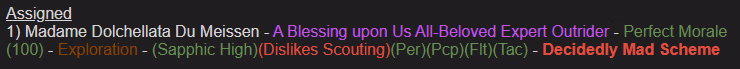 Mutiny stopper: It's in, just flip the switch and your lovely compatriots won't try and steal your camp from you, no matter how much of a failure of a commander you are. Blacklisting them was tested, but honestly was a pain in the ass to setup and maintain and was stopped before I sunk too much time into it.