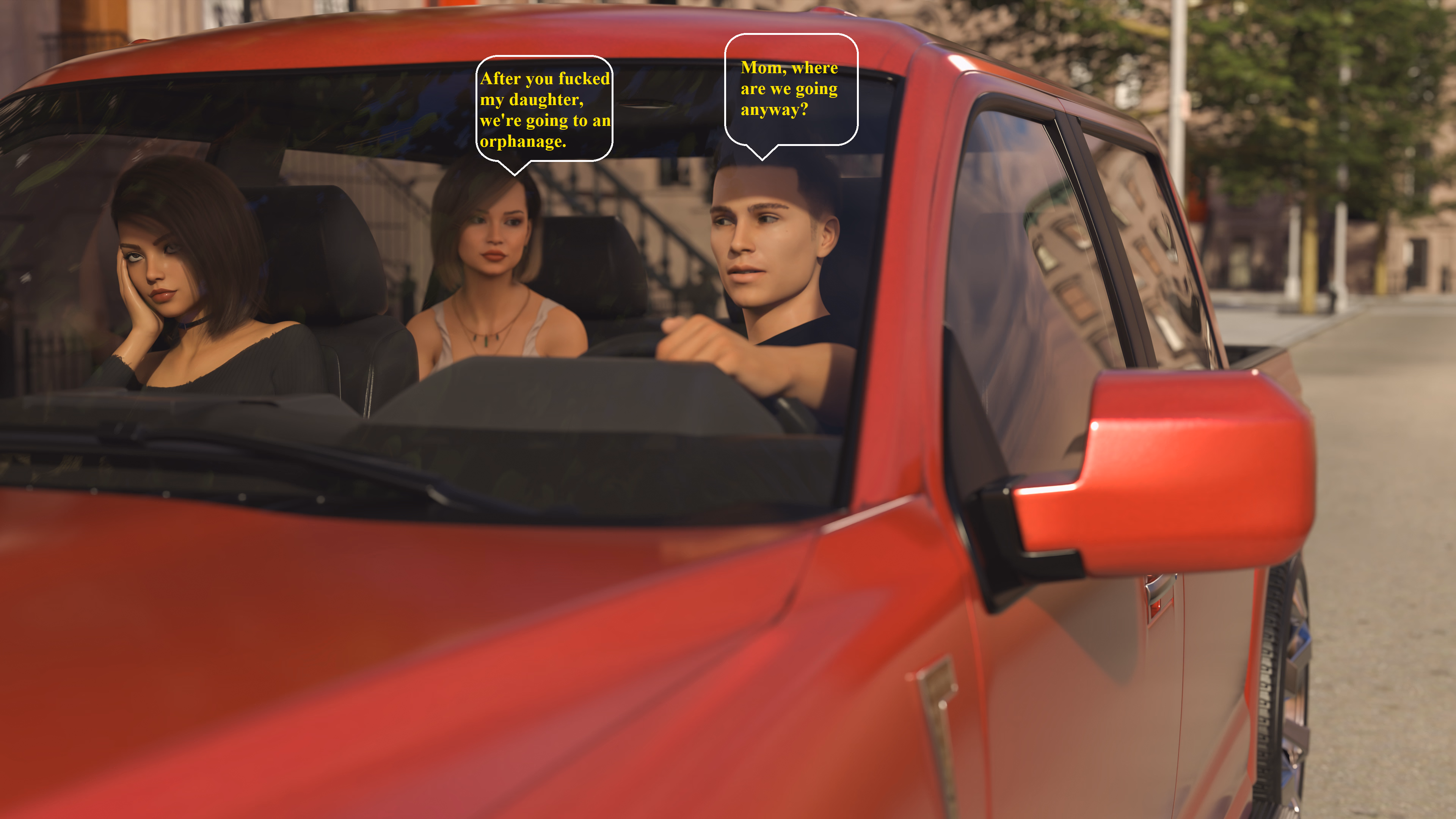 No one looks happy in this car.