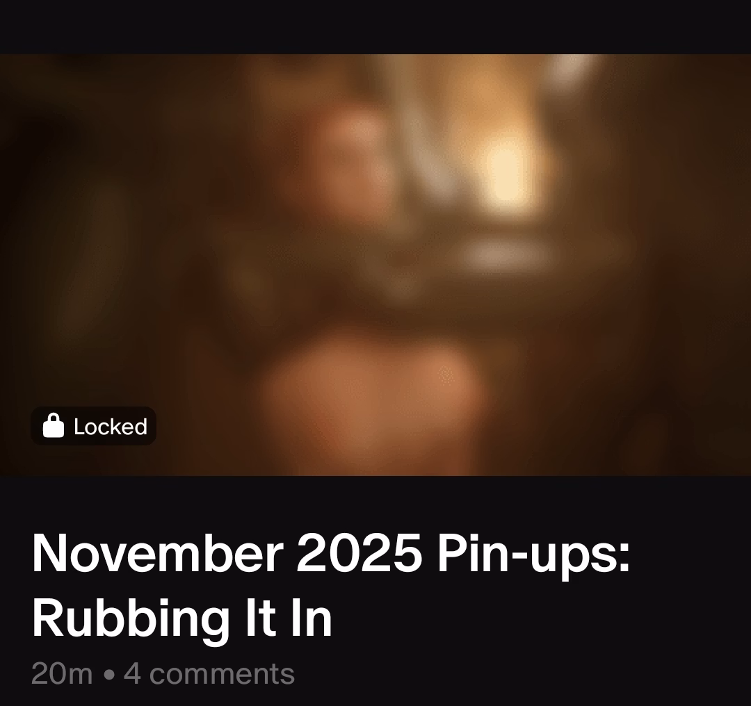 It's been pretty much established for years that nyl will almost always do end of month pin-ups. unless there is an animation challenge then you're gonna be waiting for a longer project. it's not 2014/2015 anymore where he was doing 4-5 pinups a month in SFM :unsure: