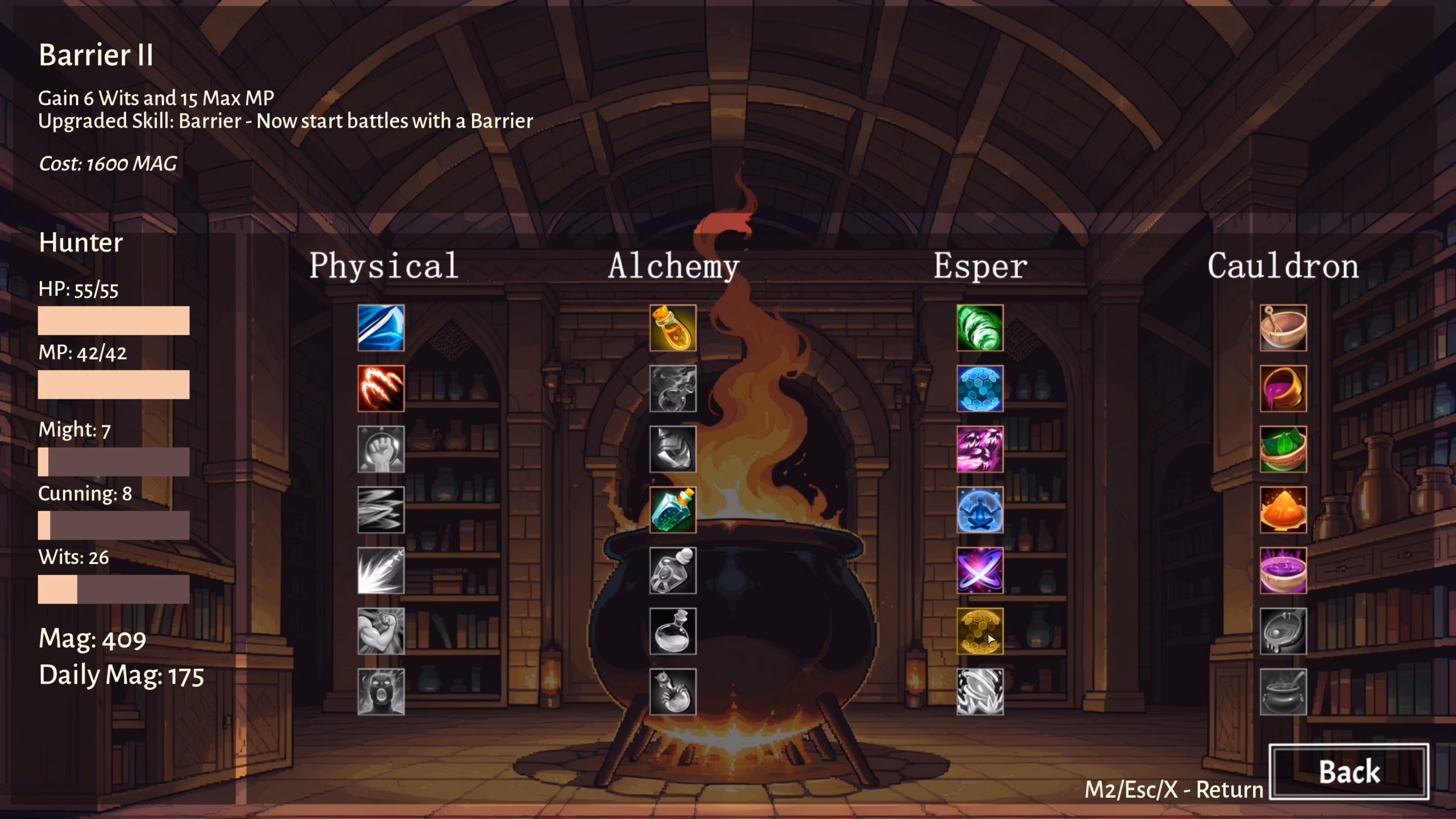 Early drafts of the game had the protagonist appear during combat, and their design was inspired by the Old Hunters from Bloodborne. He wielded a sawblade (hence the blood-theme of the physical attacks), and specialized in alchemy.Why characters name is Hunter when his specialization is an alchemist?