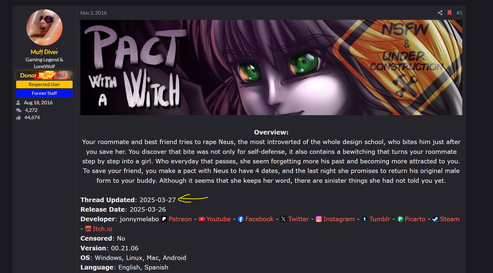 The update before the last one was more than 2 years ago though. He has 2 other games that he's simultaneously developing and he seems to be focusing on those more.