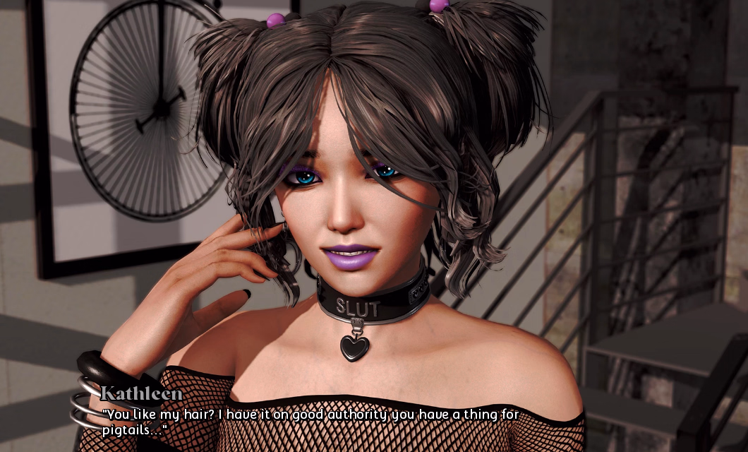 I think its just a throwback to a discussion on discord, where somebody wanted to see Kat with pigtailes. The same hair style was then used for this scene.View attachment 5517571