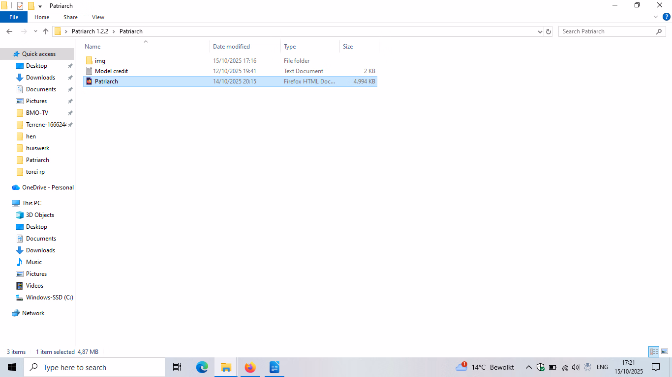 edit5: when you open the html file, lets say in firefox, is the hmlt's path something like "file:///C:/blablafolder/Patriarch.html" or "https/http"? if it is https, it may not work with locale files as it doesn't need whatever that encryption is called... ssl i think? for https, http should be fine. But I don't see how you can open a locale html file in firefox in anyway except 'file:///' method, which should work with other locale files, including image files.