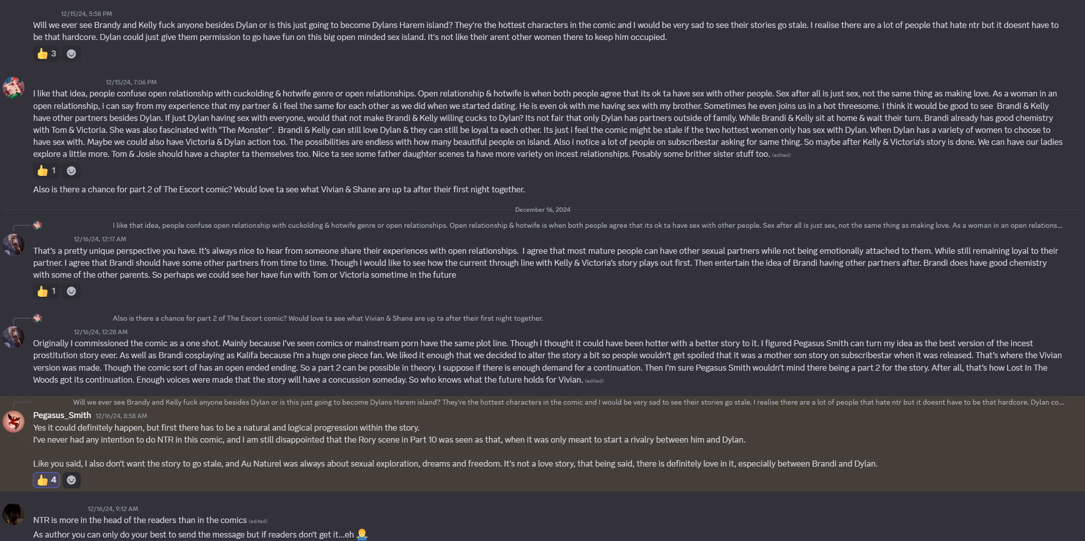 PS let the possibility open remember, is time... you know it I know it everyone knows it.I thing the subs don't like the idea of Brandy having sex with any other men but Dylan.