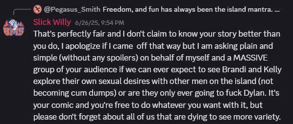 So what's the fucking point of the setting of this comic then it doesn't makes sense at all just for Dylan to have fun whenever he wants while the females are there like placeholders for him in most of the cases really? Just look at his body count in comparison that's retarded and hypocritical af.