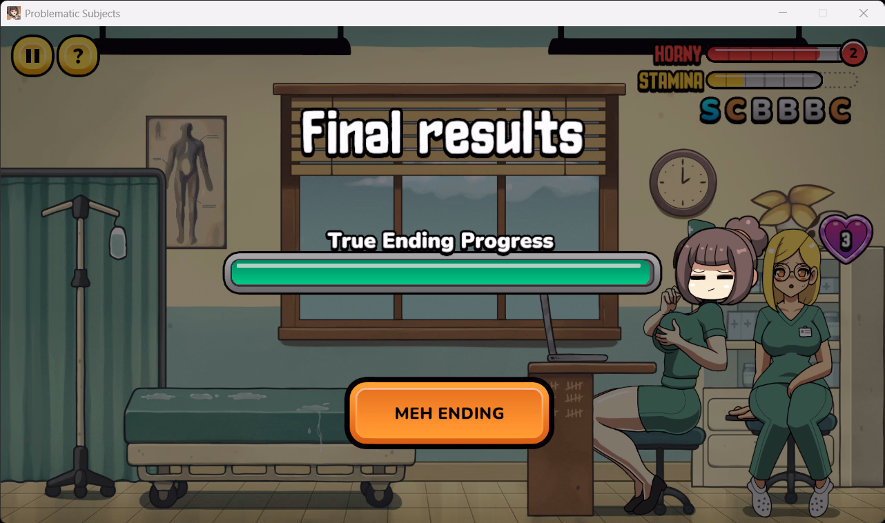 Don't lose hope, it took me several attempts to get the true ending. For my better attempts, getting Jack and assigning him boob grab early was key as it gives a "Wow" rating and it not as heavy on stamina.