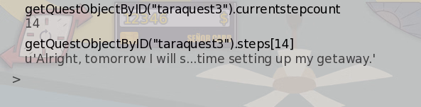 $ progressquest("taraquest3") #Alright, everything is set up... All I need to do is pick a day and pretend to go to sleep before evening. <<<< this was missed