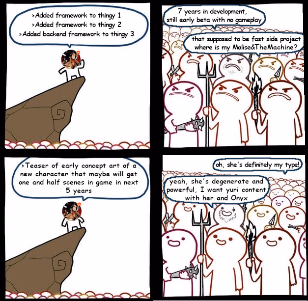 Discussing dev's approach to development in his game's thread is one thing, but bringing it to another... I'm afraid it will look like I'm spreading hatred. So I would like to not tell, sorry. Especially since, in that thread, people seems either naive yet or liking him too much, because they don't even jocking about those manuscripts.