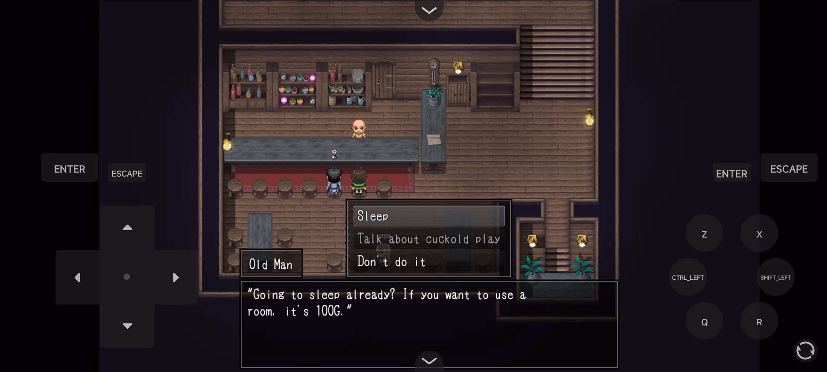 This is where the bad part pops up. The game is marketed as one that's focused on NTR content, and indeed, something like 70% of the H-content is focused on the girls being with the would-be bull of the game. The problem is that this isn't integrated in the main story at all. You have to talk with the inn-keeper at night, who brings up the idea of lending the girl(s) out to other men, and then you have to have MC actually do the deed by talking with them. You're not really given a gameplay or story incentive to do any of this aside from the fact that MC finds the idea potentially hot, though the dialog with the inn-keeper doesn't seem like he's suddenly sold on it from the get go.