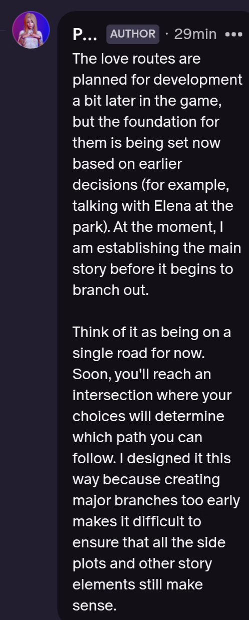 As for the game..the [Prologue]keeping me from checking it out. I'll take a look when I know devs update schedule and the game looks like it'll ever actually be completed.. because so many of these chapter 1/prologue/ games just get abandoned..
