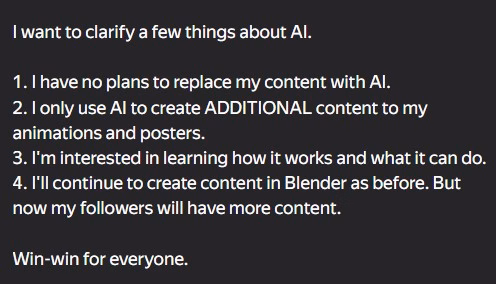 can anyone even say that his non-ai stuff doesnt have ai in it? i dont mind the short anims just cause theyre ai, but everyone i swa relying on ai has gone to making shitty things