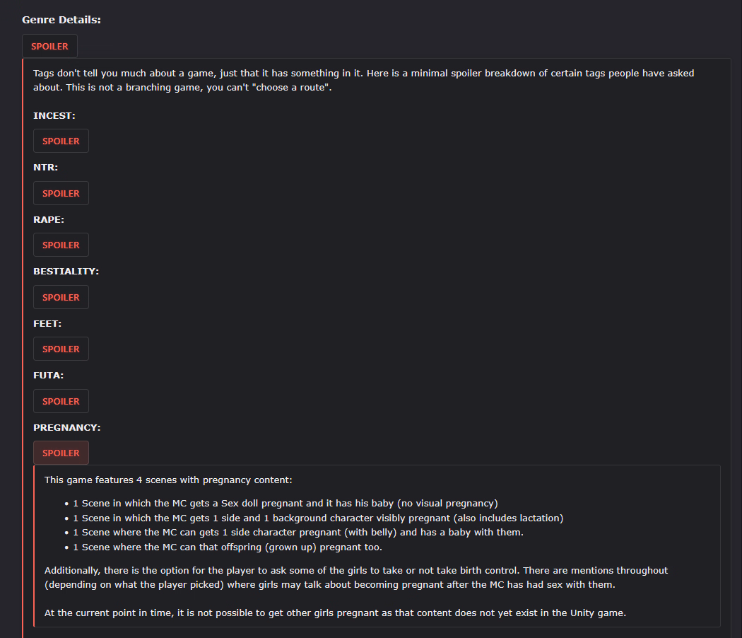You are correct, they aren't really needed, mostly they're exist for extra clarity (and because android sometimes fucks with text size). Mainly they help me spot errors, by making it really clear what type of text something should be. You wouldn't think it would matter, but after the 50th read through of text~ it all just sort of blends together. But, if they bother you, the code is open, and I put all the character names in one spot (game/scripts/character_names.rpy), a simple search and replace of " (Thoughts)" to "" will take care of them.