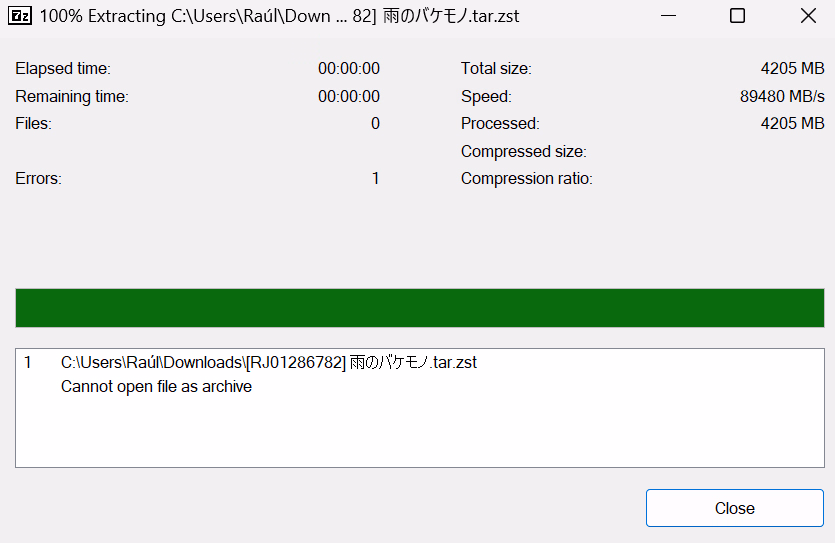 Just an update, it worked with WINRAR when I didn't apply the japanase code when extractingHad trouble wit Win Rar so I used 7zip and got this error, anyone else? View attachment 5537894