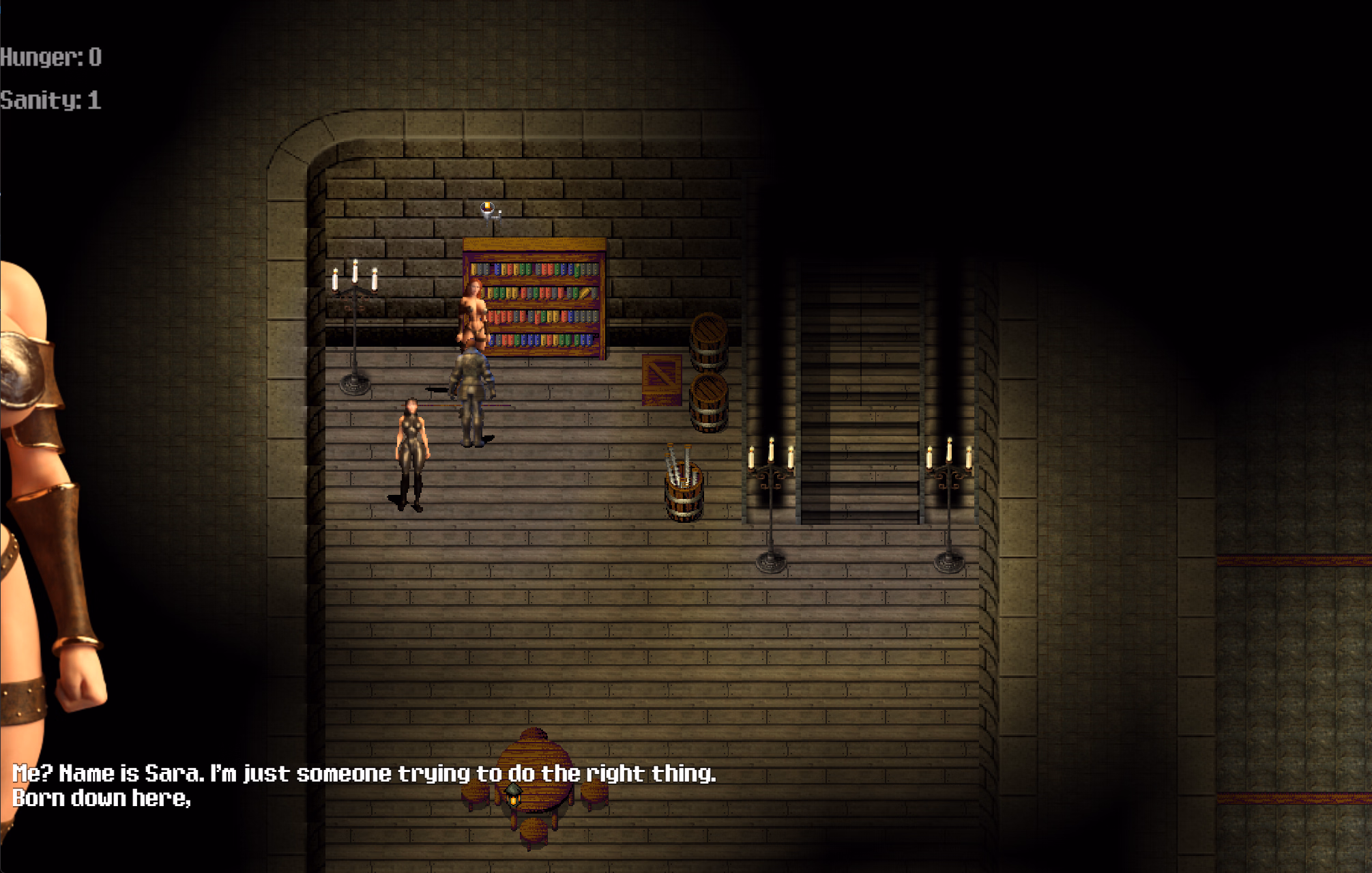 Run past them to the wall at the back. There's a door somewhere to the right.I like this game, but I don't know how to get out of the first room with the ogre ad the giantess with dark hair?