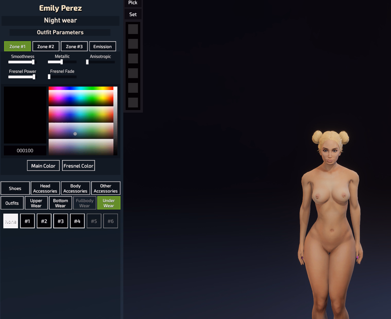 I believe it's a hack, not sure, but for what we have without any hacks, you can make emily nude for her night wear, unlock this for underwear and then you can click on none, then she will be nude for nightHey guys i saw a few pics around here from some users where their characters were naked, nude, no clothes at all, nada... how the fuk you do that?