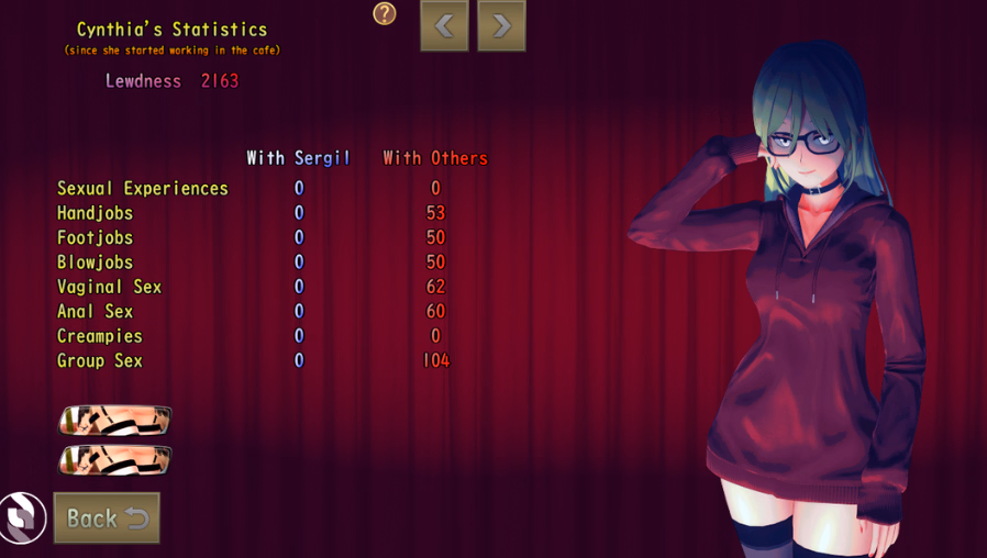 It's just a Cafe before the fact and what Sergil and Cynthia wanted overall with it when Sergil quit his job. But giving the Pins is lore implied because of how Yellow City works. Either way, it's up to player choice which is better since the game has Harem elements.That makes sense. Since the game has a tutorial that progressively introduces new features of the game in the first few days, I was kinda "hoping" for a story introduction to ntr, such as a proposition by Cynthia making mention to the pins. I get it that the pins are a "cool" alternative to a settings switch, but it makes it feel like you're deciding to turn the café into a brothel without even having a conversation about it with the girls. Not even the MC's thoughts on the matter, feels a bit "puppet-master-ish".