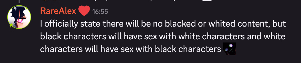and out of the blue he start adding in black characters, and I'm SO NOT dealing with race play/interracial bullshit, in a game about netorase, that's gonna turn into blacked cuckold and all the yada yada.