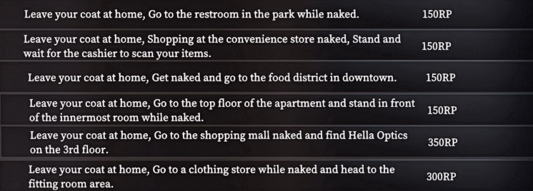 -Item Requirement: Vibrator, Tit Rotor, Kuri Rotor, Handcuffs.