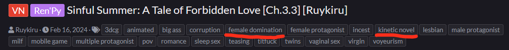 It's quite interesting to see an incest VN with just two female LIs throughout the entire story. The relationship between the twins feels like something straight out of a Literotica story, and I personally love it. But have you thought about how you're going to keep things fresh with just three characters? Stories like this tend to become repetitive quickly if there's no conflict, drama, or maybe additional characters. Looking forward to seeing how this pans out — all the best.