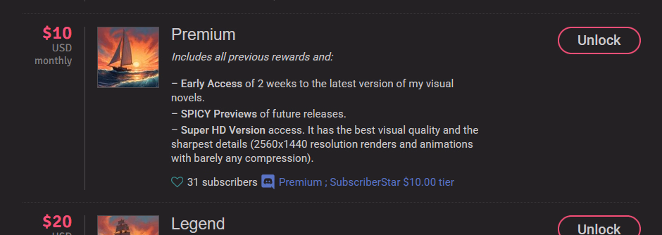 Yup, I got that, just meant to have a little fun, sorry. ^^Exactly that. I don't want to make a account just because to see what Super HD has to offer. I don't support any developers since I'm broke so why creating a Account for Subscribe Star when I can't support anyone anyway.
