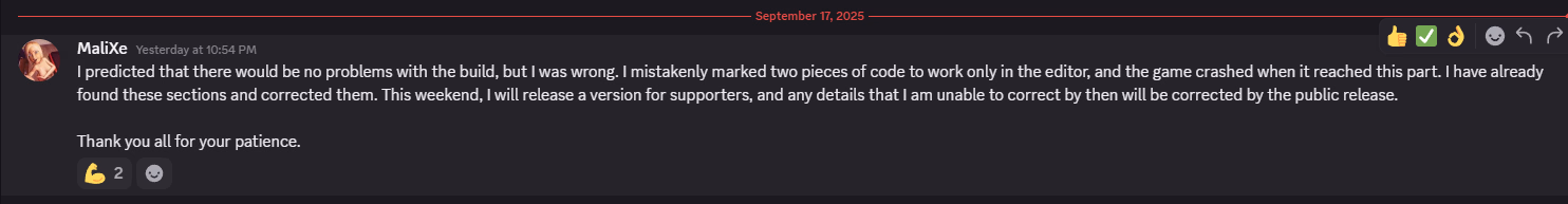 I released the first demo on Patreon and Subscribestar. I also made the link available to those who have already purchased the game on Ichi.io.