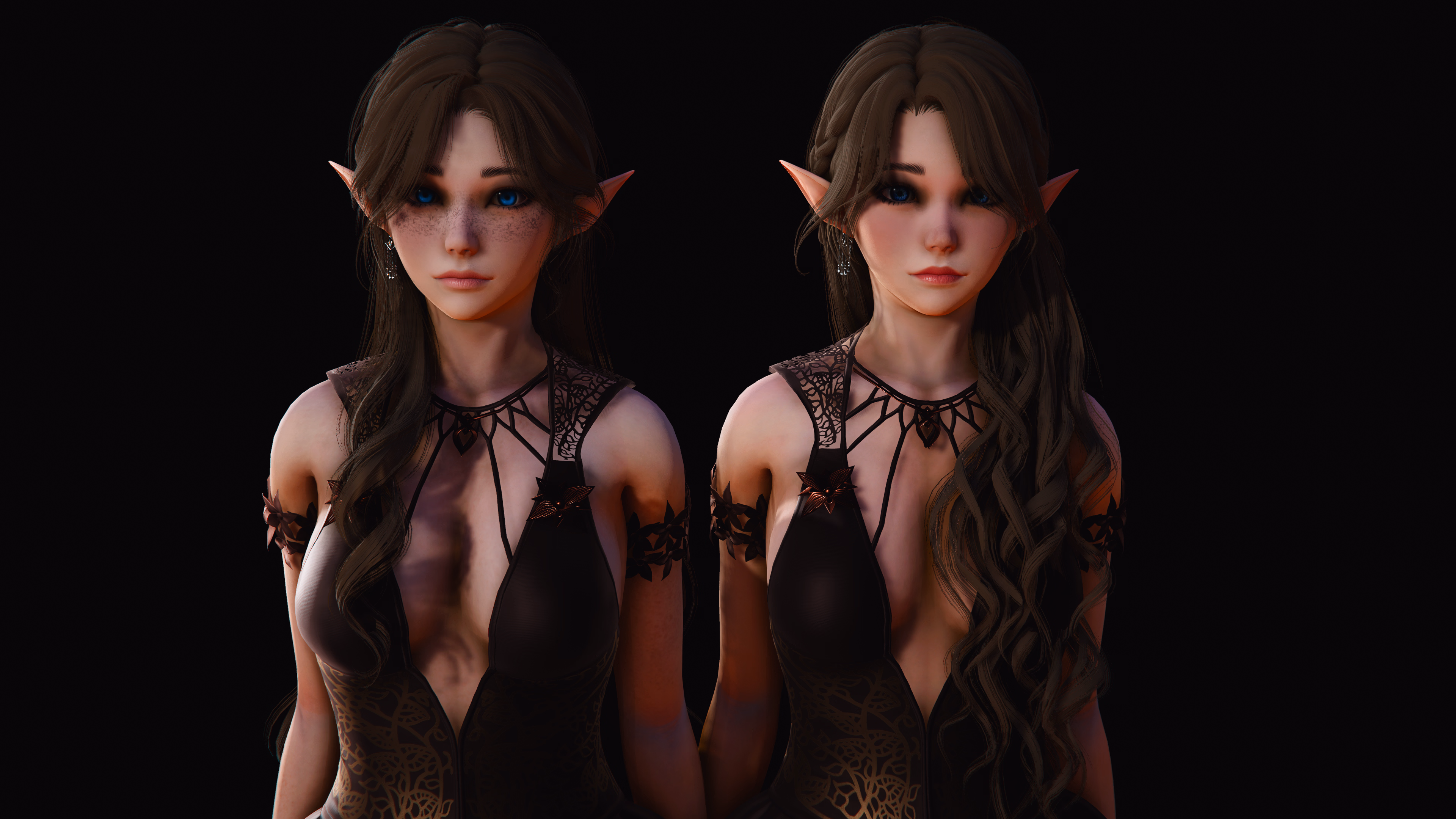 Much better! While the lack of freckles is sad(I really like freckles on a girl, they're cute!) it's a visual distinction to help easily tell them apart, and importantly it's a distinction with an explainable cause: freckles are caused by exposure to sunlight. It's entirely believable that Centoria, a ninja in training who leads an active lifestyle, would spend more time outdoors and in direct sunlight than the princess does.From: Discord Patreon tier channel