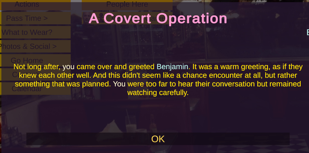 In the old friend's husband storyline, I followed him to a meeting with...me?