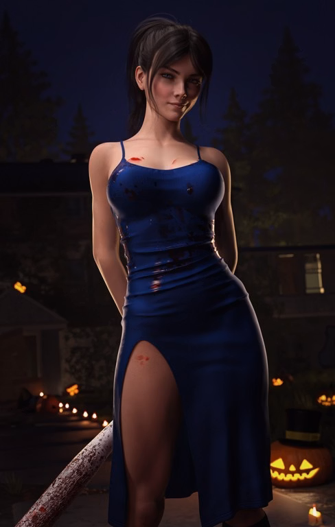 Eve yoinked the win for the Halloween render. She'll get to fight on the good side against the evil pumpkins once more.